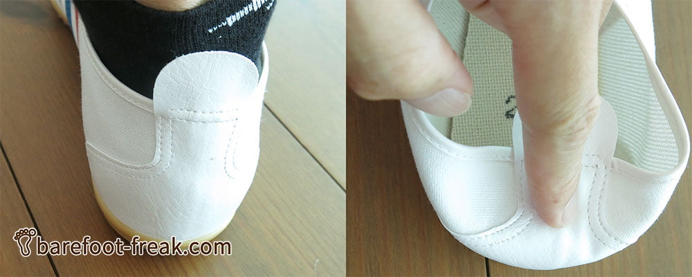 踵に芯材が無く、簡単に変形するため、踵のホールドが弱いです。外側から補強はされていますので、すぐに壊れることはないですが踵の支えとしては弱いです。
